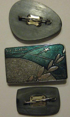 Одни из первых значков (или брошек),которые можно отнести сразу к трём темам ,но раз начинается с ,,востока-1",поместим в тему Ю.Гагарин