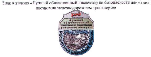 * Положение о звании «Лучший общественный инспектор по безопасности движения поездов на железнодорожном транспорте»;
