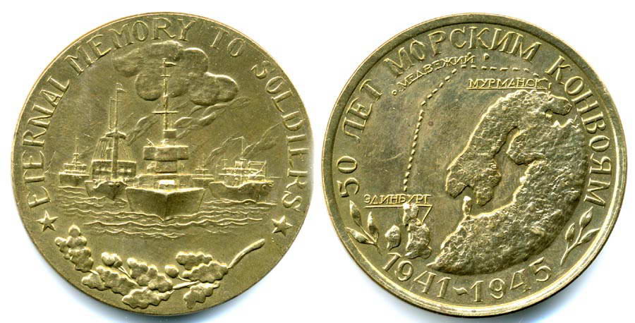 - Настольная медаль. "ПОДВОДНАЯ ЭКСПЕДИЦИЯ *PQ - QP CONVOYS* 1991-1995" "THE ARCTIC ALLIED CONVOYS 1941 - 1945" Автор Р. Харитонов, 1991 г.,