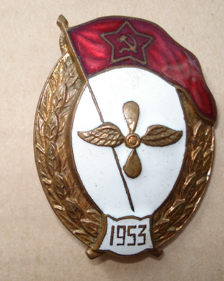Внизу знака крепился шильдик с годом окончания. При этом предусматривалось выдать их и ранее окончившим. Так как после войны первый нормальный выпуск был в 1946 г., то и знаки с более ранней, чем эта, датой не встречаются. К 1953 г. заявки окружных управлений на подобные "ранние" выпуски были выполнены и появилась возможность перейти к заранее планируемому тиражу. Директива № 45805с 1953 г. изменила технологию изготовления знака. Шильдик вошел в общий штамп. Подобные знаки получили часть выпускников 1953 г. и все, кто окончил училища в 1954 г., т.к. в этом же году происходят еще и другие изменения - решили вообще отказаться от года выпуска. Приказом МО СССР № 149 от 31 августа 1954 г. на шильдике вместо даты была помещена аббревиатура "СССР".