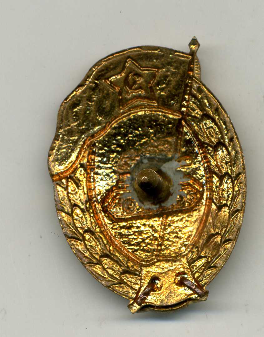 Эта форма знака просуществовала до 1 января 1958 г., так как приказом МО СССР № 213 от 24 декабря 1956 г. эмблемы были заменены гербом СССР и буквами "ВУ" (военное училище).