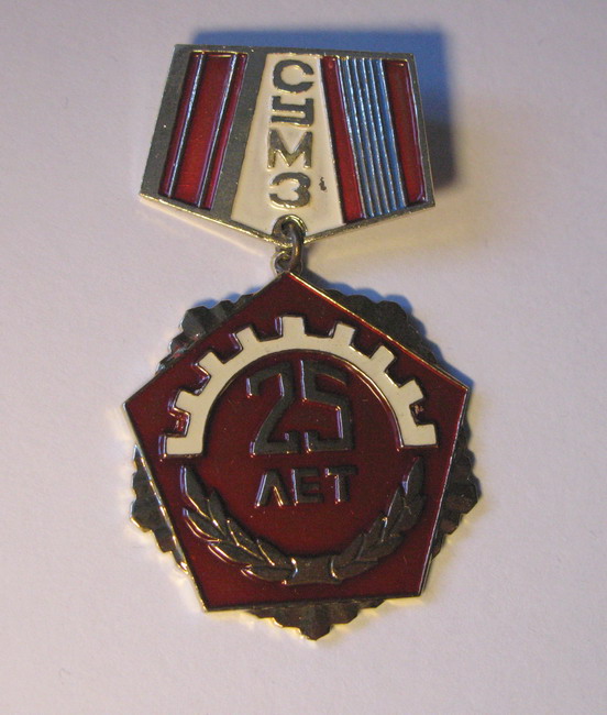 Думаю, это 40 лет Ижевскому мотозаводу. Он основан в 1933 году. Награжден в 1961 году орденом Ленина, в 1970 — орденом Трудового Красного Знамени. Получается, что значок 1973 года. Все сходится (ИМЗ и оба ордена).