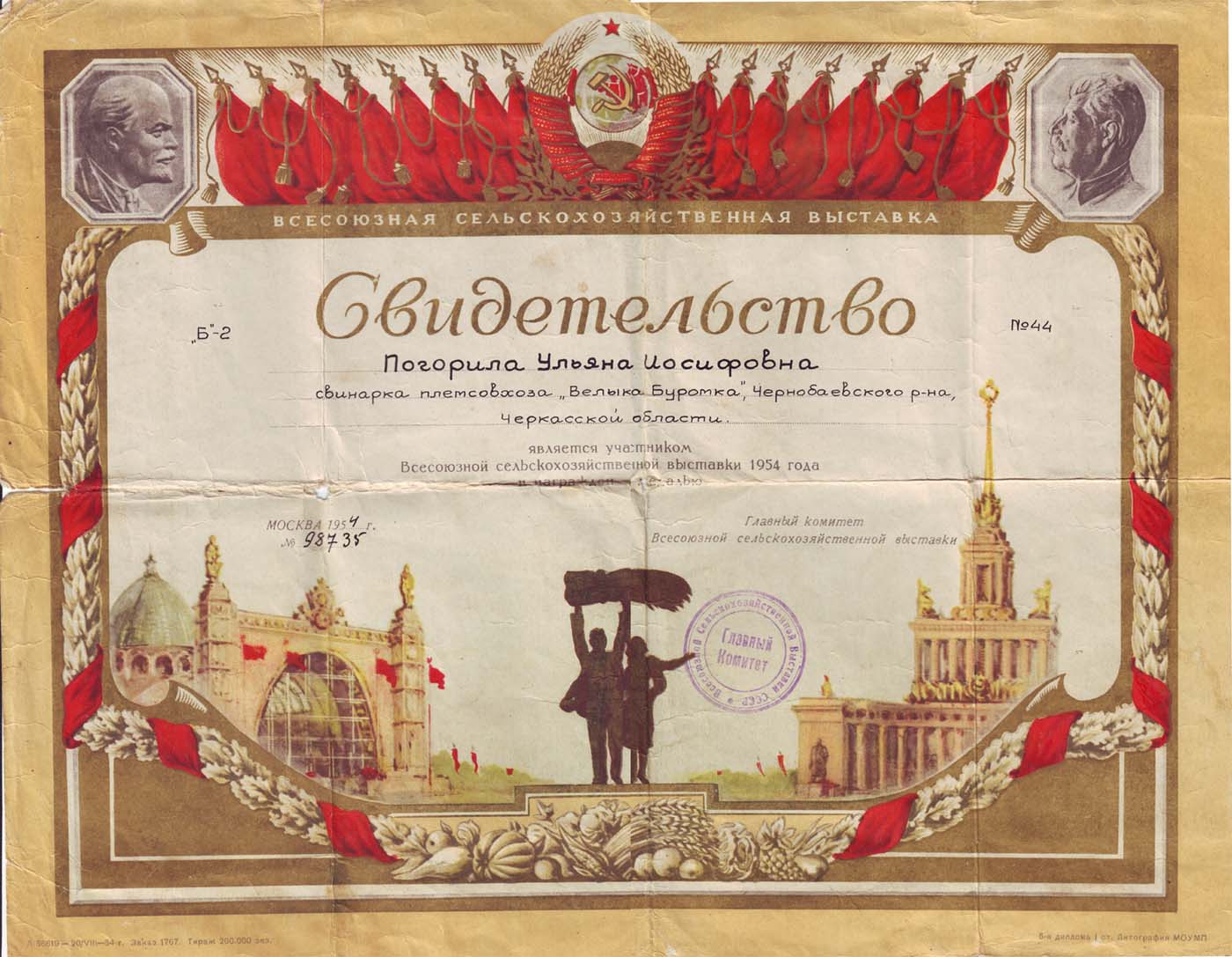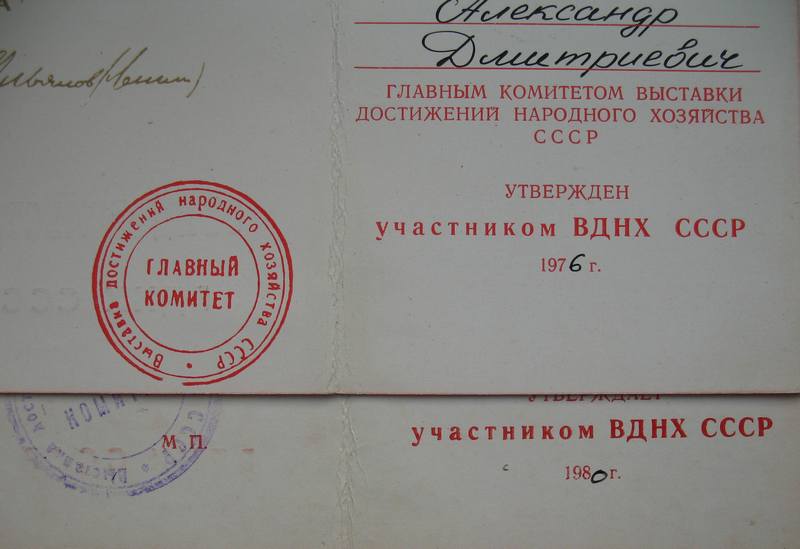 Печорин писал(а) :Если, точно употреблять термины, то это не удостоверение , а свидетельство участника выставки. Удостоверение вручалось с медалью: "Победителю соц. сор.", "За успехи..."