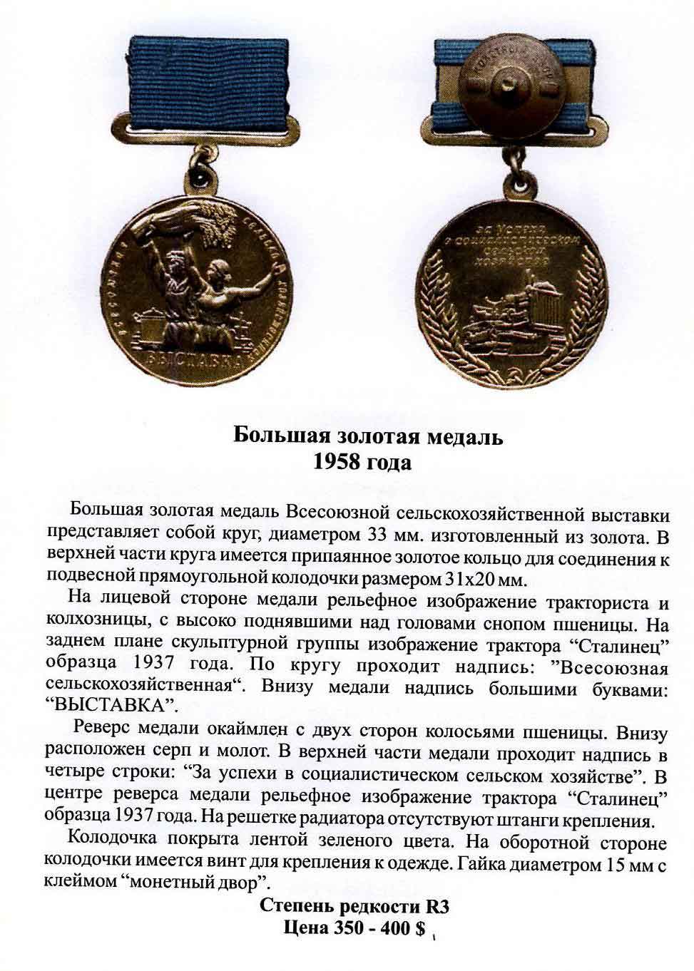 Большая и малая золотые медали ВСХВ