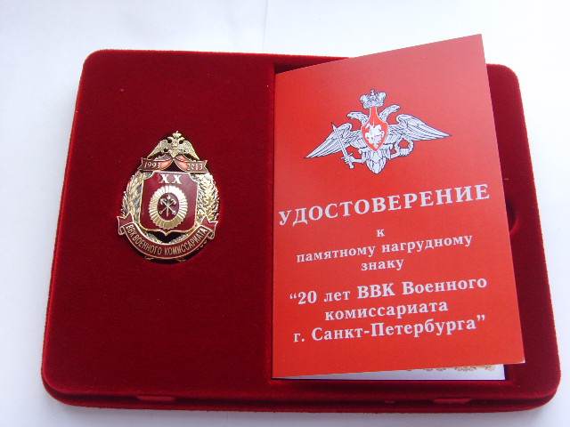 Как было сделано, так и сделано! Сейчас уже не изменить! С ув.Борис писал(а) :Солидный знак и "правильное удостоверение". А вот, что касается удостоверений и знаков 442-го - еще больше неясностей: из разворота удостоверения вообще непонятно, каким знаком награждается. Изображения знаков отсутствуют.Травкин писал(а) :Вот еще знак-20 лет ВВК Военного комиссариата С-Пб! Тираж 50 экз., номерные!