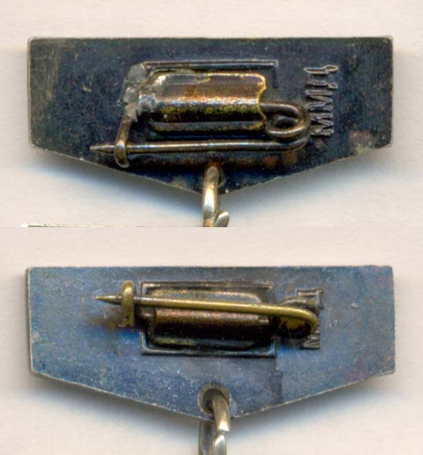 Появилась разновидность - разные штампы оборотной стороны: на плашках клеймо ММД различается своим видом; на втором знаке надпись "За отличные успехи в работе" заметно приподнята.