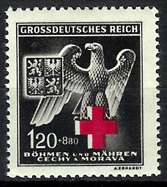 Во время оккупации, в частности Чехии и Моравии, была выпущена вот такая почтовая марка.