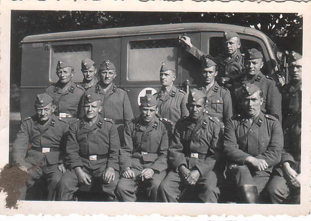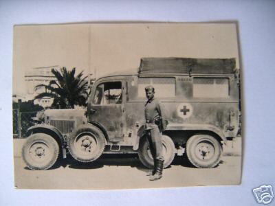 Foto eines Sani, vor seinem KfZ, aufgenommen in Athen Sommer 1941
