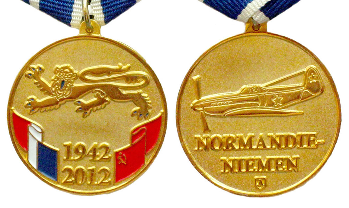 О боевых делах полка "Нормандия – Неман" красноречиво говорили сверкающие на его знамени две советские и четыре французские награды: ордена Красного Знамени, Александра Невского, Почетного легиона, Крест Освобождения, Крест войны с шестью пальмами и Военная медаль. 96 летчиков, проходивших службу в полку "Нормандия – Неман", были награждены 112 орденами Советского Союза, а четверо из них удостоены высшей военной награды – звания Героя Советского Союза. Многие летчики полка получили боевые ордена и медали Франции.