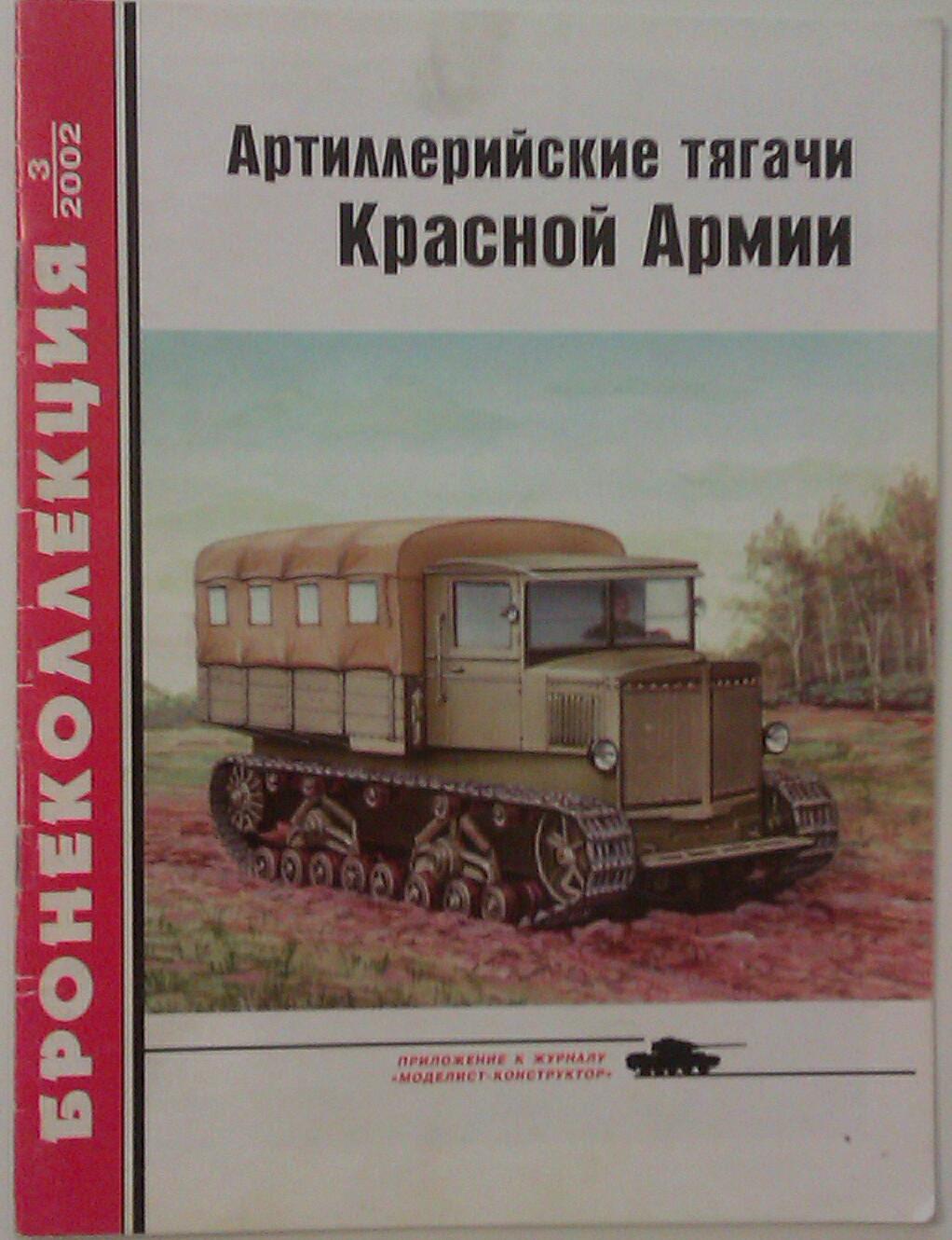 Е. Прочко "Артиллерийские тягачи Красной Армии". В данном выпуске описаны тягачи довоенного производства. Наиболее интересны "Коминтерн" (ходовая часть и подвеска от танка Т-24) и "Ворошиловец" (на нём устанавливался танковый дизель дефорсированной модификации В-2В). "Ворошиловец" использовался не только как артиллерийский тягач, но для эвакуации танков, в том числе самых тяжёлых Т-35. Всего с конца 1939 года до конца августа 1941 года, до эвакуации ХПЗ в Нижний Тагил было выпущено 1123 тягача. В конце войны в войсках осталось 336 "Ворошиловцев".