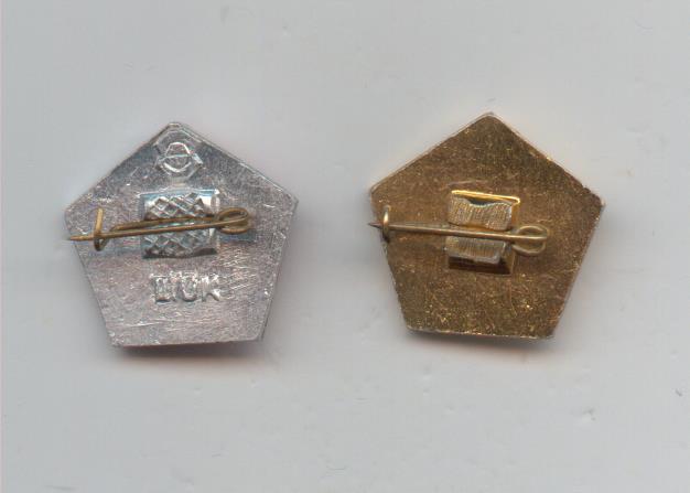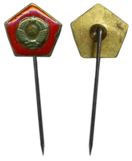 X.39. Правильный пятиугольник со стороной 5 мм. В центре размещена надпись: «СССР». Значок символизирует доставленный на Луну вымпел. Томп. Игл.