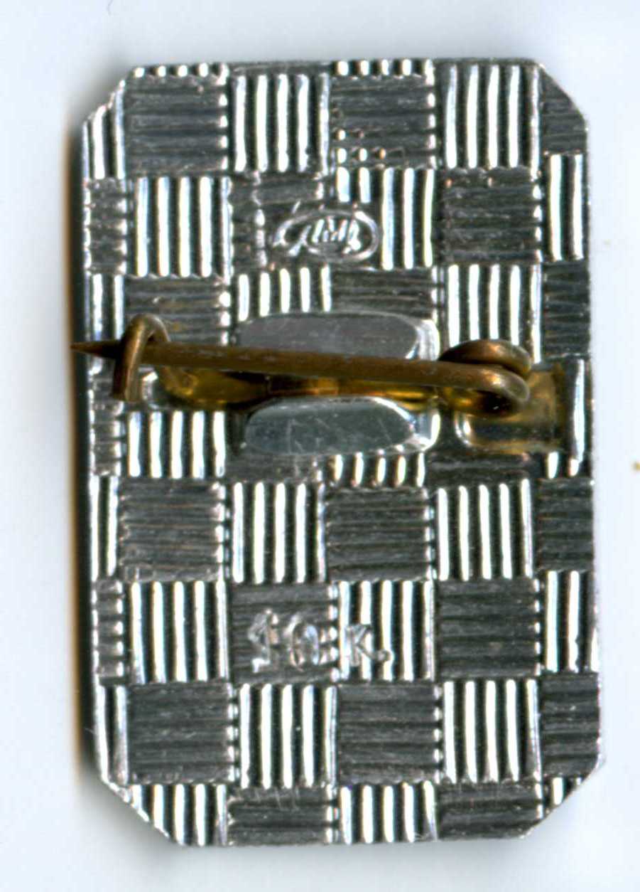 X.39. Правильный пятиугольник со стороной 5 мм. В центре размещена надпись: «СССР». Значок символизирует доставленный на Луну вымпел. Томп. Игл.