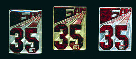 3 знака к 35-летию БАМа (нейзильбер, латунь, алюминий):