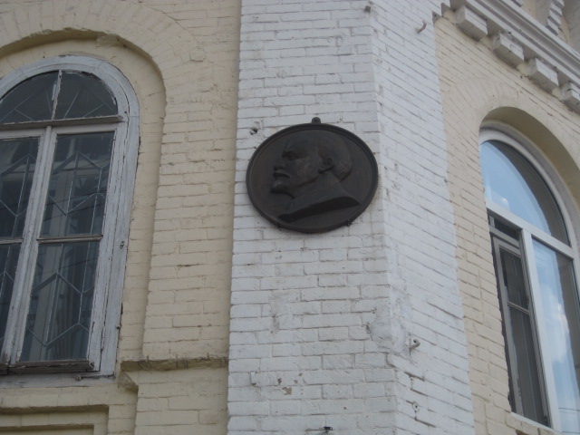 Чугунный (Касли) медальон с барельефом Ленина на стене старинного здания в г.Котельнич Кировской области.