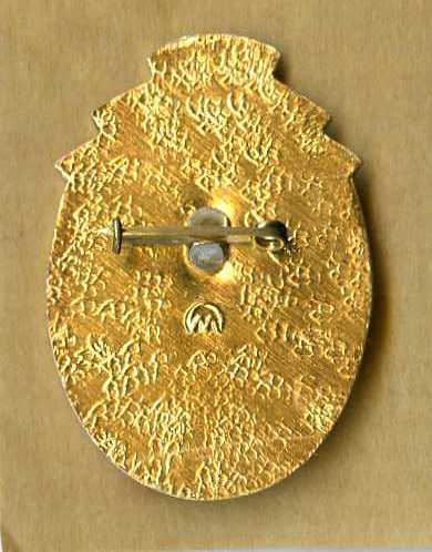 судя по оригинальным бороздочкам в креплении булавки, этот знак был сделан в первой половине 70-х г.г. на заводе "Прогресс" в г. Луганске (клеймо стало проставляться с 1974 года).