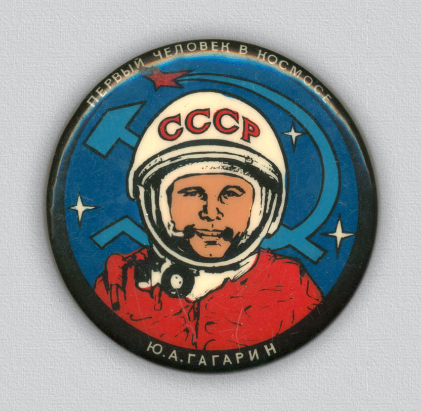 "Пуговица", диаметр 55 мм тоже из Звёздного городка, привезли мне его дней 10 назад. А сегодня ходил во вновь открывшийся Музей космонавтики ,экспозиция интересная, познавательная ,но к сожалению ни одного значка ни нового, ни старого ,даже обидно как-то за музей. Могли бы позаботится , чтобы посетители купили сувениры на память, а в киоске одни космические консервы по "космическим " ценам, воздушные шарики с портретом Гагарина и несколько книг тоже по астрономическим ценам.Вот такие впечатления о культпоходе.