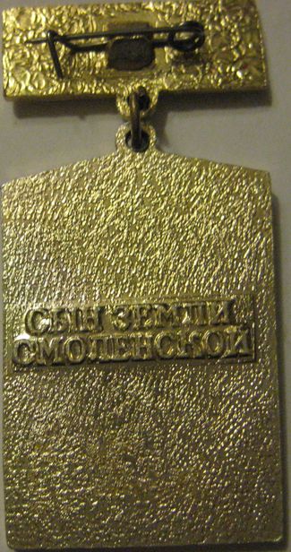 Ещё один значок,посвящённый этому же юбилею,есть много вариантов по раскраске обоих значков (Смоляне это часто себе это позволяли.)Приведу лишь два.Обратная сторона тоже разная с ценой и без.