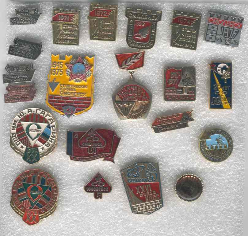 Обратил внимание, что в теме "Космос" абсолютно отсутствует упоминание об интернациональном студенческом строительном отряде, который долгие годы работал в г.Гагарин. И еще - Смоленский областной ССО носил имя Ю.Гагарина. Надеюсь, что значки ССО будут дополнительным подспорьем для коллекционеров космической темы. Я не стал убирать значки без "Гагарина", чтобы сохранить целостность темы.