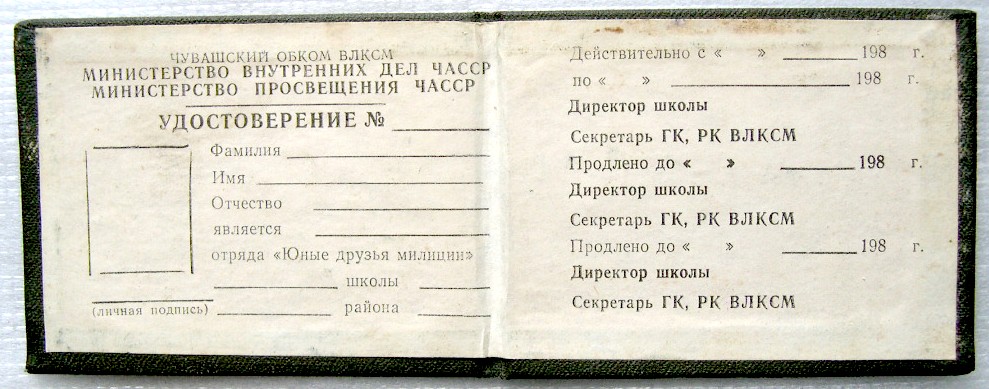 Незаполненное удостоверение... от Чувашского обкома ВЛКСМ, МВД и МП Чувашской АССР.