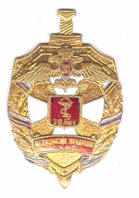 Случайно подвернулся знак военных медиков. Судя по кресту с мечами и датам он посвящен первой чеченской кампании.