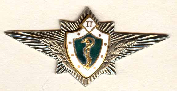 Приказом МО РФ от 21.04.1997года №141 были учреждены знаки отличия квалификационных категорий для военнослужащих медицинской и фармацевтической специальностей или проще говоря нагрудные знаки по медицинским категориям (именно категориям, а не классностям). Всего и у военных и у гражданских врачей (провизоров) существует три категории ? вторая, первая и высшая по любой из специальностей. Механизм получения категории следующий: пишется рапорт (заявление) по команде с просьбой о сдаче квалификационных экзаменов, затем, в случае положительного решения предоставляется отчет о работе за последние три года. После допуска и успешной сдачи квалификационного экзамена, решением аттестационной комиссии присуждается та или иная категория по специальности. Через пять лет врач имеет право подать документы на подтверждение имеющейся или присуждение более высокой категории. За категорию существуют денежные надбавки. В Вооруженных силах, в отличие от гражданского здравоохранения они просто смешные. Например, начальник отделения гарнизонного госпиталя это 16-17 тарифный разряд (т.е. 2668-2768 рублей). Вторая квалификационная категория это 3% от указанной суммы в месяц.