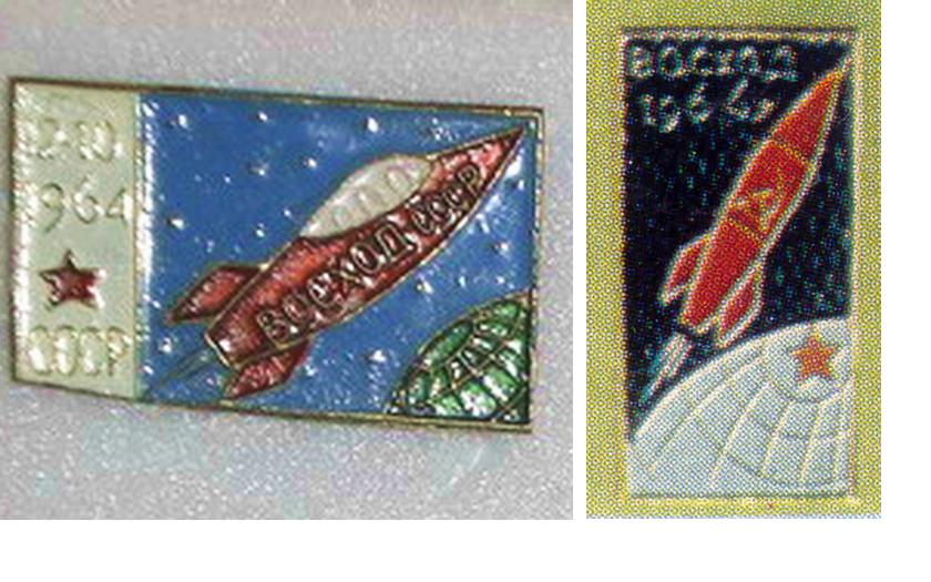 Мою версию, конечно, можно оспорить. Но я еще раз внимательно вгляделся в очертания хвостового оперения ракет, градусной сетки, написание буквы "Д" в слове "ВОСХОД" и мое мнение только утвердилось: это рука одного человека. Полукустарное качество обоих значков, а также их мизерный тираж еще и наталкивают на мысль об их одном месте рождения.