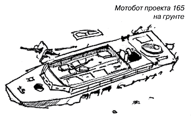 На лоции объект не отмечен — затонул у самого подножия скалы и лежит вверх килем. Корпус разорван в средней части. По дну вокруг разбросаны кассеты с 76-мм снарядами. На бронекатера серии 1124 ставились башни от танка Т-34-76 и, это только подтверждает версию о типе корабля. В районе носа обнаружен барбет носовой башни — её основание. Но самой башни не видно. Скорее всего, она глубоко «зарылась» в песок. Ближе к корме разлом в районе машинного отделения. По всей площади дна разбросаны детали механизмов и фрагменты двигателя. Трубы, куски покорёженного металла и куски обшивки, вот всё, что можно рассмотреть в этом районе.