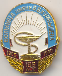 Мариинская больница( одно время носила имя Куйбышева)-200лет. Очень по исполнению приятный знак.