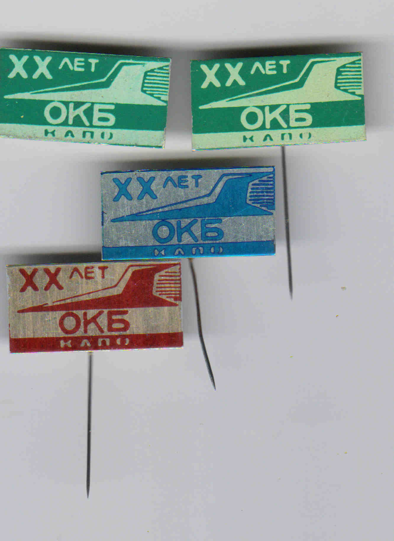 ХХ лет ОКБ Куйбышевского агрегатного производственного объединения. Левый верхний знак на булавке, остальные - игла.