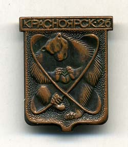 Хочется вспомнить еще один российский город, который в своей символике также имеет атомное ядро (тема у нас города мирного атома, подтема по гербам, так что все приличия соблюдены и город атомный есть и символика есть). Этот город - Норильск. На гербе ни слова об атомной промышленности. А вот на значках, посвященных Норильску один да проскочил. Кроме традиционных никеля и меди (символов благополучия :D этого одного из самых северных городов мира), есть и атом, символ того, что в окрестностях этого города на протяжении целого ряда лет добывали урановую руду и производили "тяжелую воду".