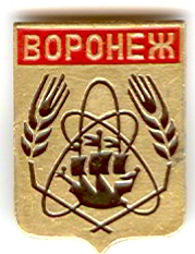 Говоря о Смоленской АЭС почему не вспомнить о Воронежской? Тем более, что в геральдике она также засветилась. "Официальному советскому гербу <Воронежа> предшествовала эмблема, введенная в 1965 году. На эмблеме изображались колосья, орбиты электронов и парусный кораблик. Позже эти элементы вошли в герб города" (http://voronezh.pochta.ru/vrngerb.htm). Правда, как я не искал я на советском гербе орбиты электронов, так и не нашел, но по мне так этот герб, гораздо симпотичнее советского утвержденного варианта (в 1969 году).