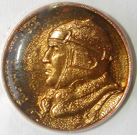 Валерий Чкалов. Надпись не просматривается из-за толстого слоя смолы. Размером со стандартный российский рубль.