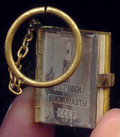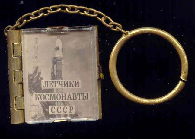Вот такой брелок-книжечку можно было приобрести в 1974 г. в галантерейном магазине. Здесь 21 портрет первых советских космонавтов - от Гагарина до Волкова.