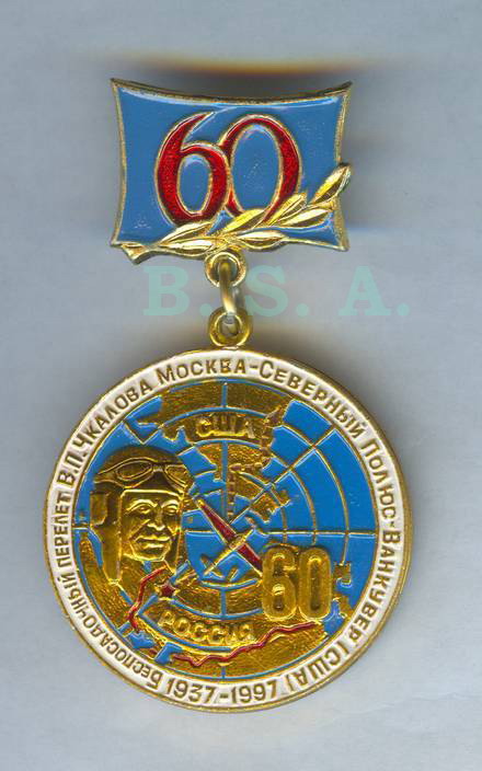 Торжества по случаю юбилея перелета проходили в конце июня 1997 года, в том числе, и на аэродроме Чкаловский (г. Щелково, М.О.). У перрона (здания аэровокзала) был открыт монумент, посвященный этому перелету. Было много парней с той стороны полюса.ВЯТИЧ писал(а) : МЕДАЛЬ НЕ МОЯ!