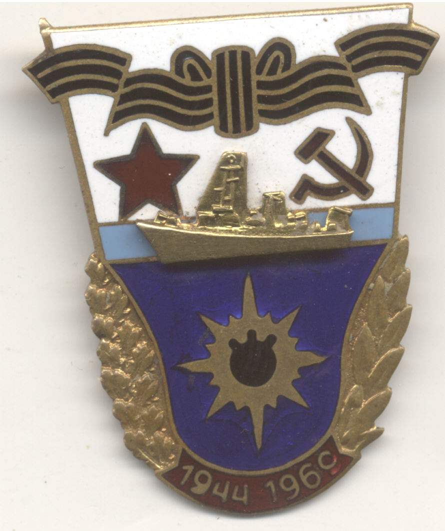Заказ командования 184 бригады к юбилею соединения. Второй вариант знаков для офицеров выполнен в белом металле с накладным кораблем.