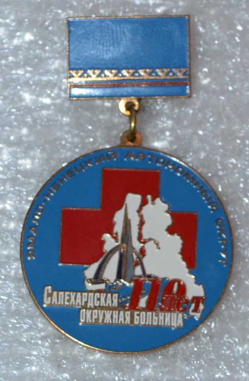 Герб ЯНАО тяжелый белый и жёлтый металл