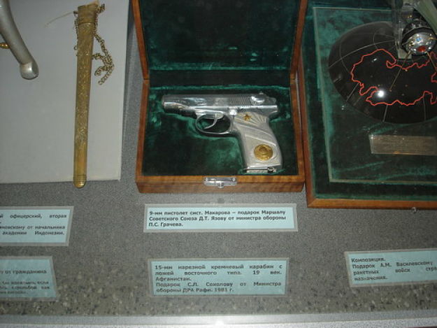 Кроме того, достоверно известно, что у Сталина действительно был и пистолет Воеводина (которых за период с 1939 года до конца войны было изготовлено не более полутора тысяч) с гравировкой на затворе «Наркому Обороны СССР тов СТАЛИНУ. от автора 1942 г.», изготовленный самим талантливым конструктором-самоучкой и присланный из Ижевска, куда Воеводин был эвакуирован в 1941 году. Воеводин, понятное дело, хотел привлечь внимание вождя и, получив высочайшую поддержку, довести свой в целом неплохой 18(!)-зарядный пистолет до приемлемого уровня надежности. Но не помогло – в 1944 его крошечную (6 человек включая самого Воеводина и его жену) конструкторскую группу распустили и тему закрыли.