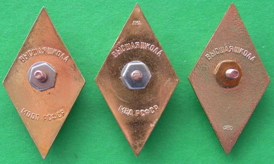 Если интересно, то могу показать скан "украинца".5. Выпускники Киевской высшей школы (1960-1962) получили нагрудный знак с надписью на реверсе Высшая школа МВД УССР.