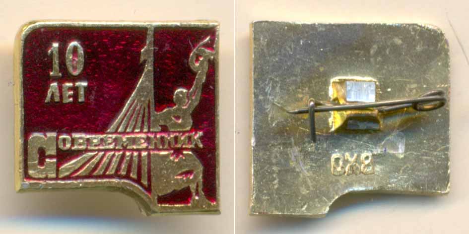 Вариант - анодированный и покрашенный.WOL писал(а) :10 лет, "Современник" (предположительно - издательство). Размер 17х16 мм.