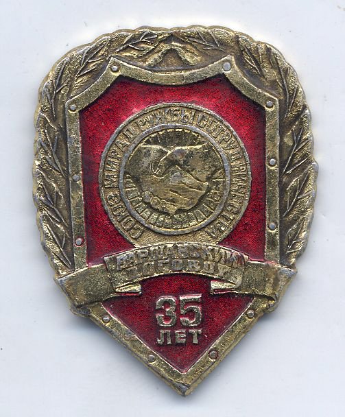 Вот такой знак попался "25 лет Варшавскому договору". Заколка, как мне кажется, перепаяна. Знак в тяжелом металле. На "самопал" не похоже... У кого какие будут мнения?