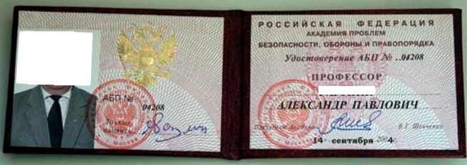 Президент Академии проблем безопасности, обороны и правопорядка,