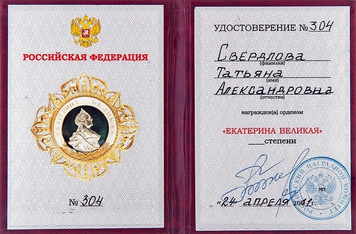 Орденом Екатерины Великой награждаются граждане за добропорядочное выполнение своего служебного и гражданского долга, а также за высокие достижения в государственной, производственной, научно-исследовательской, социальной, культурной, общественной и благотворительной деятельности, направленные на укрепление государства Российского.