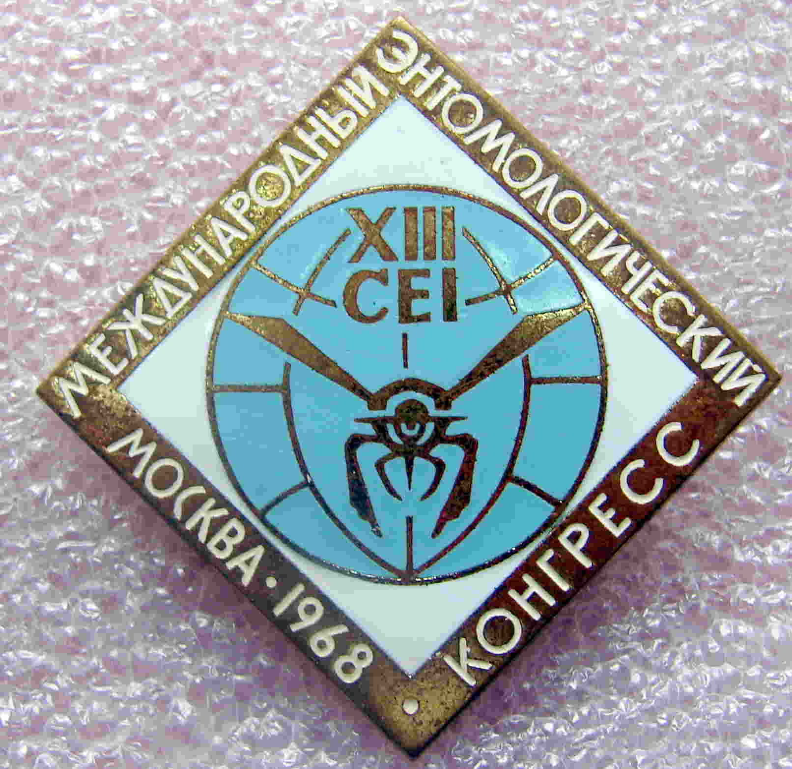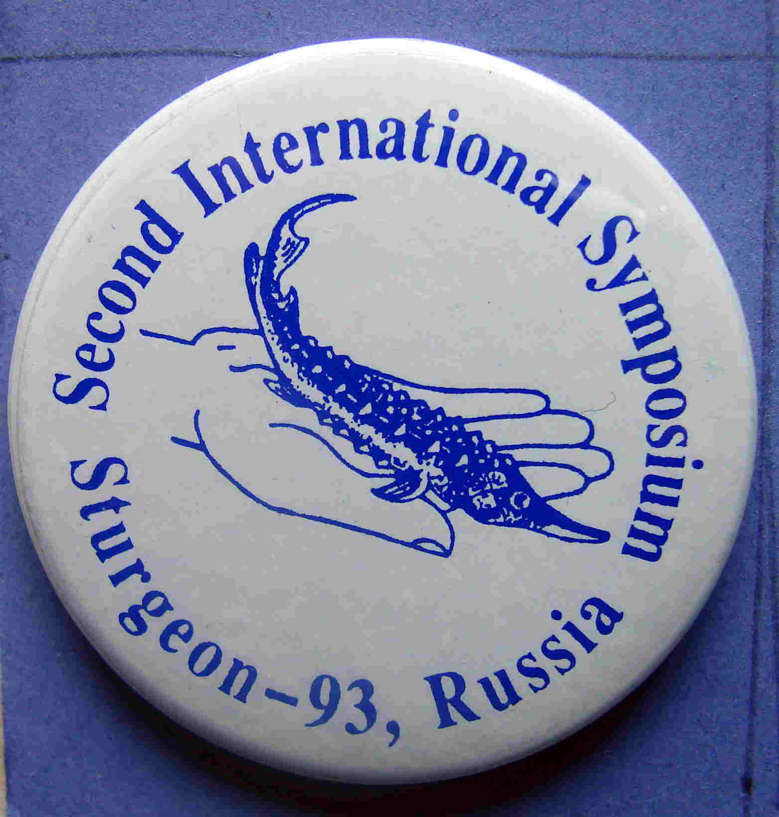 Когда у ученых было мало денег и много энтузиазма, появлялись вот такие душевные самоделочкки. Картинка изготовленная при помощи фотопечати просто наклеивалась на кусочек пластика, английская булавка вплавлялась с обратной стороны, и все готово! Размер 30х50 мм, тираж - вряд ли большой.