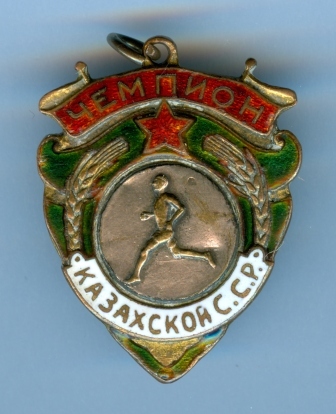 Три значка и жетон: Южно-Казахстанская и Семипалатинская области и Чемпион Казахстана: