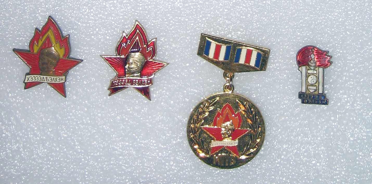 Последний знак - с Сухэ-Батором - "октябрятский" последнего поколения, сменивший "Баатарчууд" - В книжке о монгольских пионерах начала 80-х младшие детишки с такими знаками на фото.