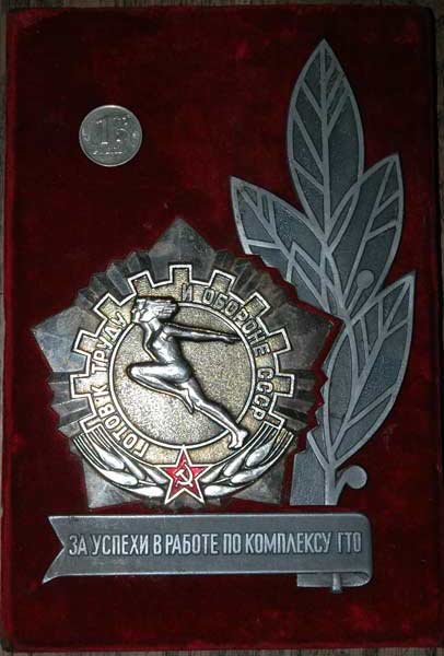 А ещё выпускались кубки с такими знаками ГТО,только размером побольше. У нас в школе стояло несколько..