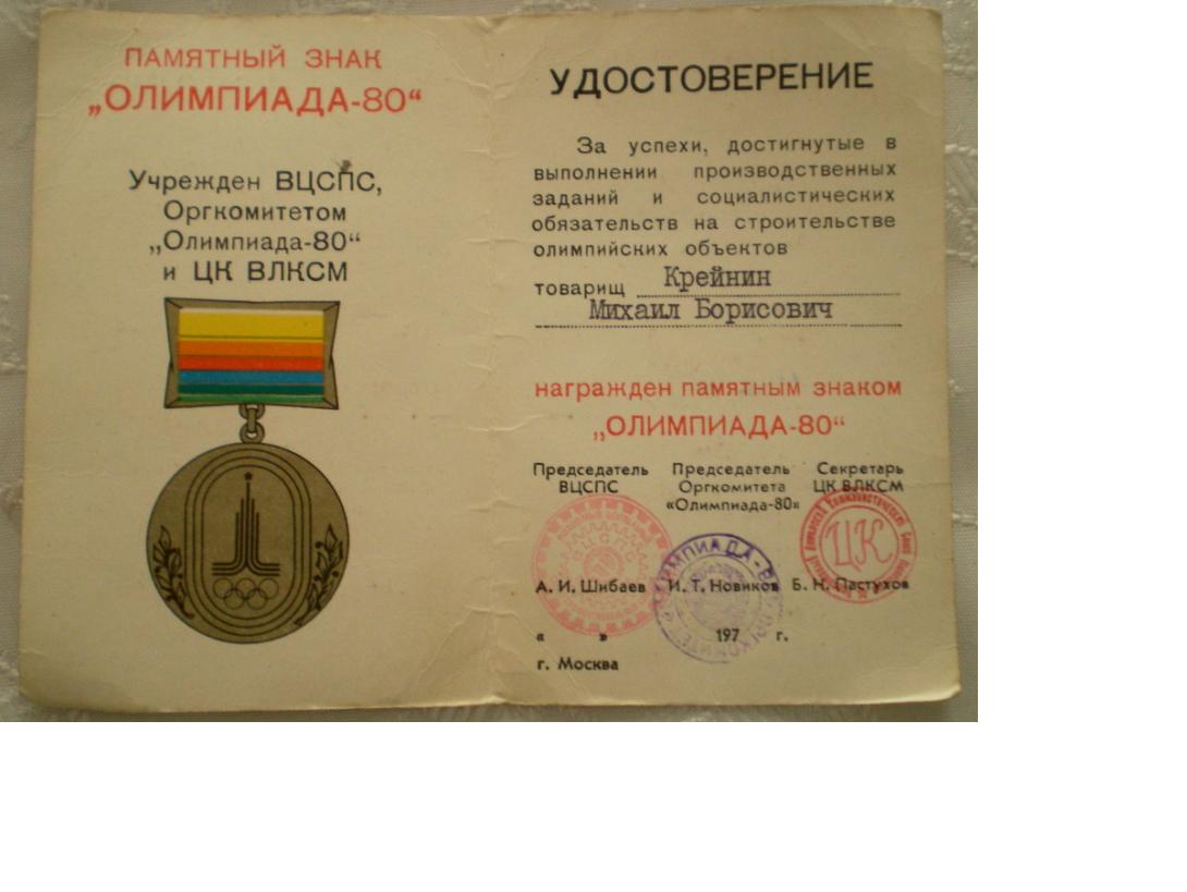 1. В удостоверении знака за организацию и проведение олимпиады 80 никаких ссылок на ЦК ВЛКСМ нет (фото знака привожу ниже).