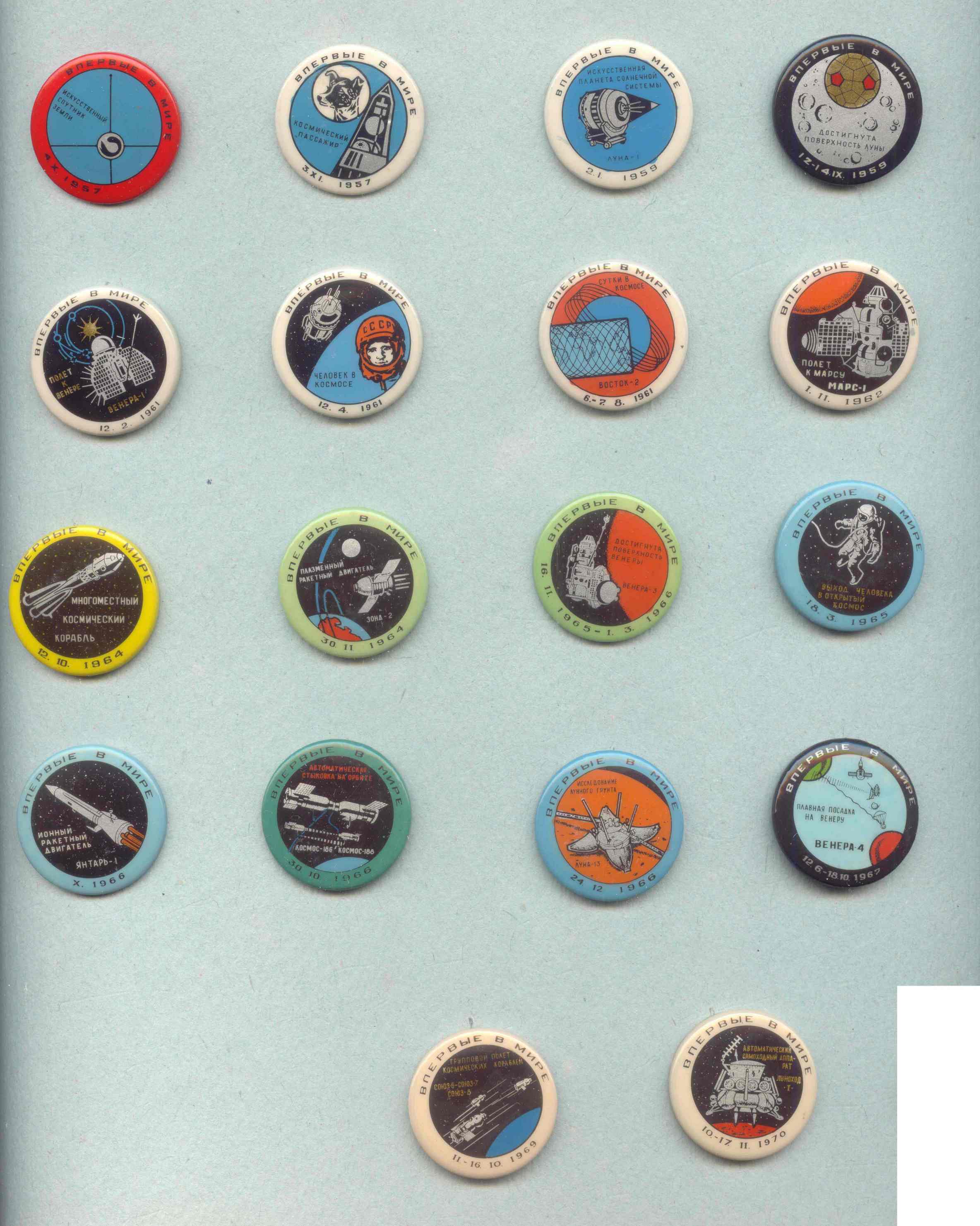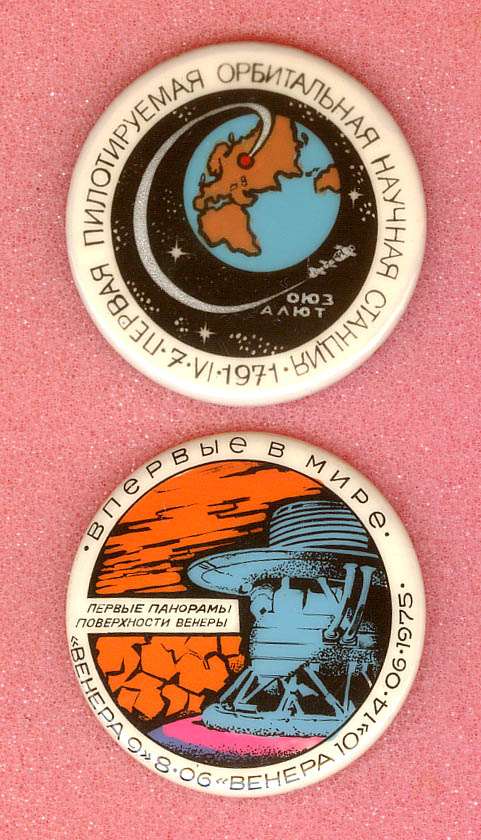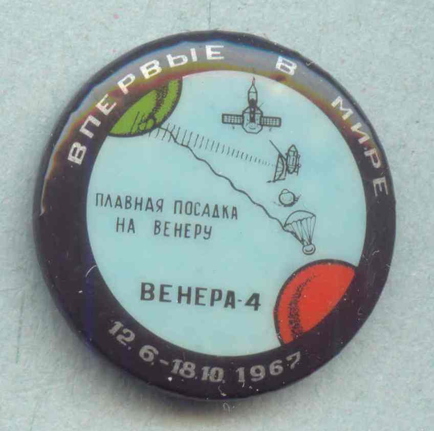 У меня, конечно, и в мыслях нет спорить с авторитетами, но на мой взгляд эти значки в значительной степени отличаются по оформлению от остальных 32-х. Даже присутствие на одном из них заглавной надписи "Впервые в мире" не примиряет, она другая по шрифту и обрамлена точками.markp писал(а) : Выше речь идёт о серии "Впервые в мире". <...> Кроме показанных есть ещё два: No33 - "Исскусственные спутники Венеры" и No34 - Панорамы поверхности Венеры. <...>