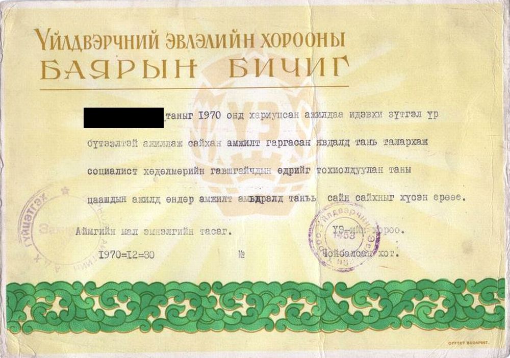 Документы к этой медали (V 07 по каталогу Баттушига).nasa_astronaut писал(а) :Это не знак, а медаль.kalex писал(а) :Знак 50 лет революционному комсомолу монголии. Хоть он есть в подборке, но здесь более отчетливо видно
