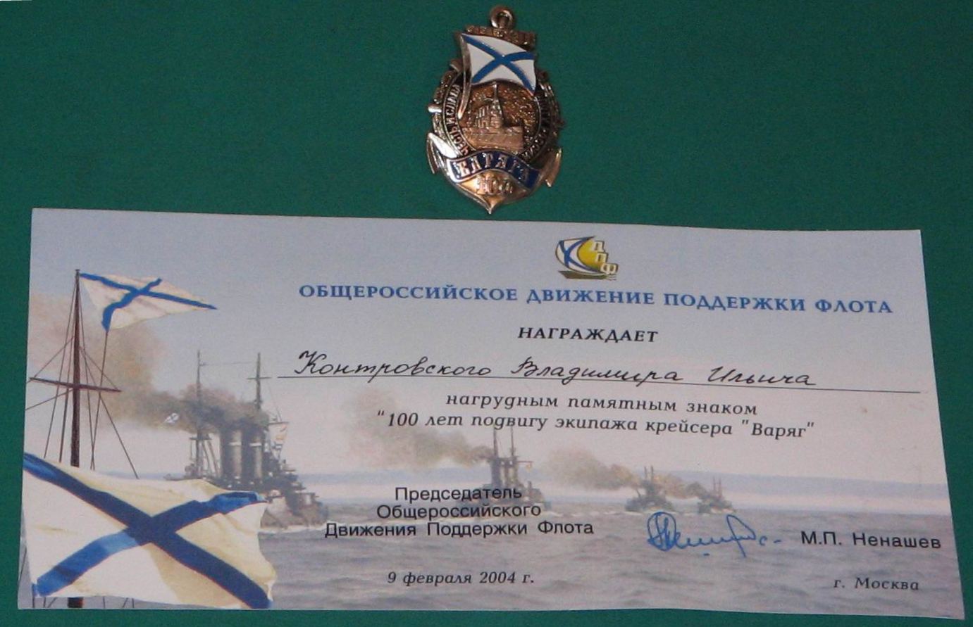 Знак к 100 летию подвига крейсера "Варяг"/ с надписью " Честь и слава флоту России"-появился уже давно,но до сих пор не показан. :)